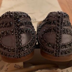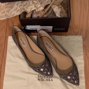 ADORABLE! I’m in love with these flats, but I have not been able to wear them (damn you COVID!). They are brand new in box with all wrapping. I purchased them last year from Nordstrom. A beautiful pewter color that can be dressed up or down.. I planned to wear mine with denim leggings or flared jeans. size 5.5