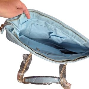 NWT Badgley Mischka Quilted Tote Bag with Gold Chain (BMH-108 Light Blue)