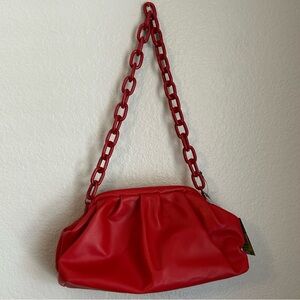 NWT, Badgley Mischka Red Shoulder Handbag Wrapped Frame Clutch Chain Strap