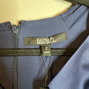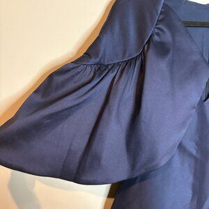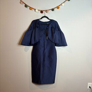 NWT Badgley Mischka Silky Navy Dress with Ruffled Drama Sleeves