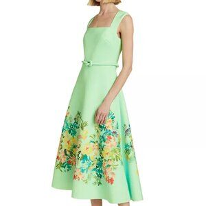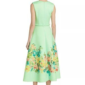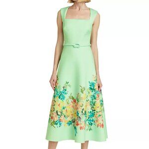 NWT Badgley Mischka Square Neckline A-Line Dress with Placed Floral Print Midi