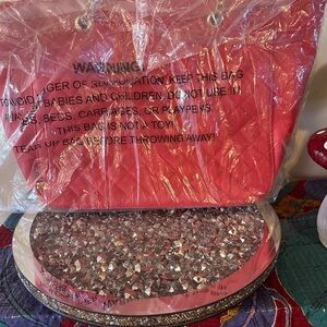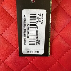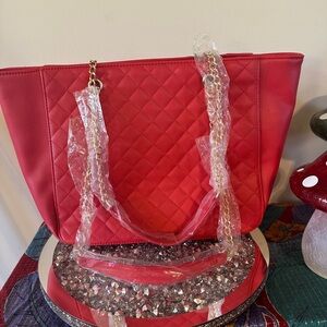 NWT - Badgley Mischka Women's Quilted Logo Tote in red. Here are some details about the bag:
