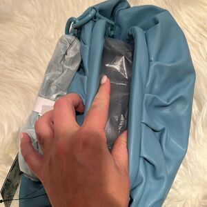 NWT Badgley Mischka Vegan Leather Wrapped Frame Clutch Bag - Blue