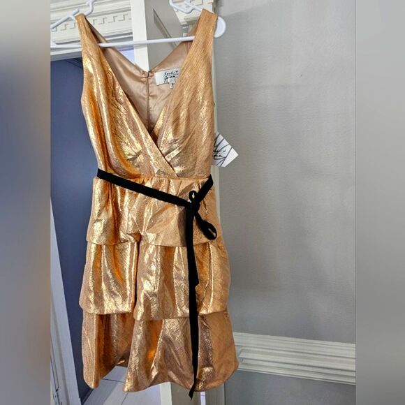 NWT Badgley Mischka by Mark and James gold cocktail dress size 0
