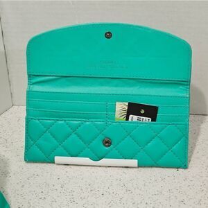 Wallet has 6 card slots and 1 cash pocket, with a snap closure.