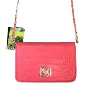 NWT Badgley Mischka Pink Croc Embossed Crossbody Bag
