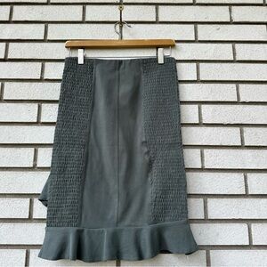 Pull on styling. Shirring throughout. Ruffle hem. Size S.