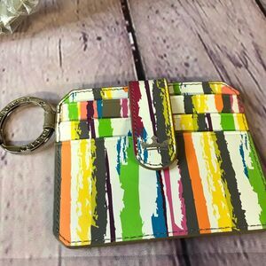 NWT Baekgaard Tan Leather Frame Shoulder Bag Watercolor Stripe Side Pockets