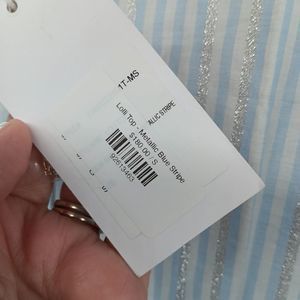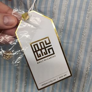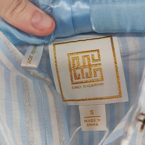 NWT & Bag Emily McCarthy Lolli Top Blouse $180 MSRP Blue Metallic Stripe Size S