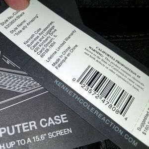 A black K. Cole bag tote with padded pocket inside for a Lap Top 1 zipper pocket on outside, and 1 inside. 5 other small velcro pockets for phone cards keys etc. The top closure is a zipper all the way across.