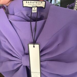 Brand new with tags BAGATELLE Collection Lilac purple bow front crop top with silver rhinestone adjustable straps and hidden zipper. Fully lined