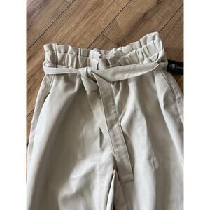 New with tags Bagatelle size medium faux leather pants. Paper waist with an attached belt to tie in the front. Cream or khaki color. Waist is 14” across when not stretched at all. Inseam is 27”.
