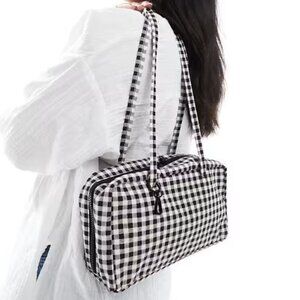 NWT Baggu Regular Nylon Bowler Bag - Black & White Gingham