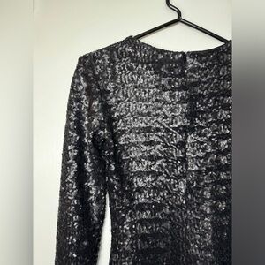 NWT Bailey 44 Heart Of Glass Allover Sequins Black Mini Long Sleeve Dress