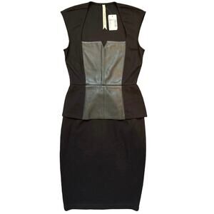 NWT Bailey 44 Sleeveless Peplum Dress in Black- Faux Leather Paneled Jersey Sleeveless Dress- Women’s US Size Small