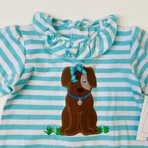 #baileyboys #puppy #love #romper #stripes #blue #applique #ribbons #rufflecollar #new #nwt #giftit