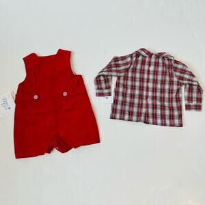 #baileyboys #corduroy #cord #red #shortall #jonjon #set #plaid #winter #peterpancollar #outfit #christmas #tabs #new #nwt #giftit #babyshower #firstchristmas