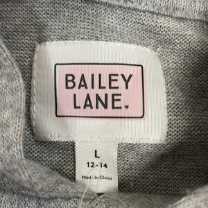NWT Bailey Lane Crop Tie Front Brushed Pullover Light Grey Floral in size L(12-14). Excellent new condition. Long sleeve, light gray with pink and purple floral print all over. Please see photos for approximate measurements and details. Item may show difference in color based upon photography and perception. Photos are part of the description, as everyone’s level of condition may vary. From smoke free and pet free home. All packages are shipped the same or next business day.
