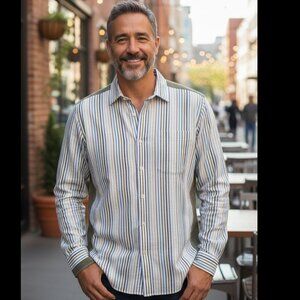 Tags: Linen, Breathable, Luxe, Luxury, Resort, Resortwear, White Lotus, Casual, Button up, button down, striped, stripes, Spring, Summer, Business casual, Easter, Church, Vacation, work, office