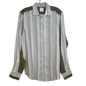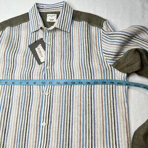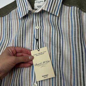 NWT Baird McNutt Linen Murano Slim Fit Shirt Multicolor Panel Detail Medium