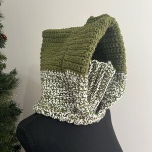 NWT Balaclava, head scarf, winter outerwear, ski gear, green and white