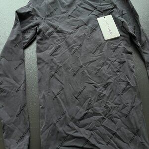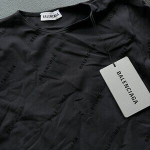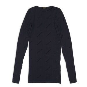 NWT Balenciaga Flock Top All Over Logo Black Long Sleeves Crewneck Fitted
