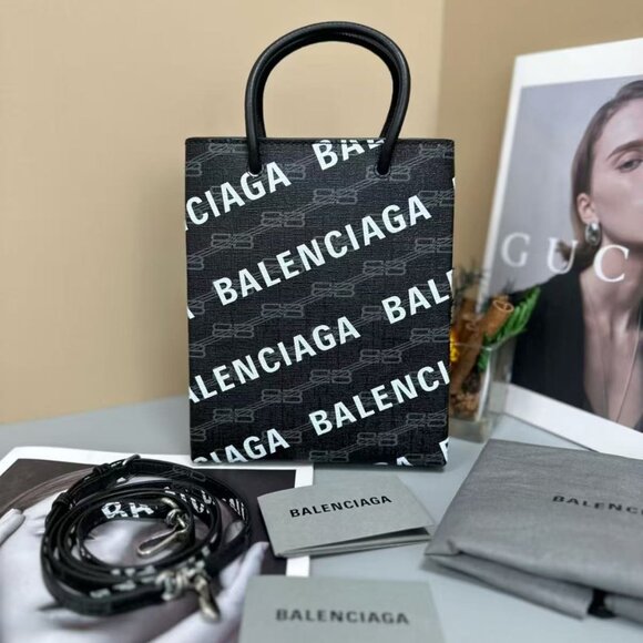 NWT Balenciaga Large Shopping Bag BB Monogram Coated Canvas and Allover Logo