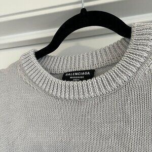 NWT Balenciaga License Crewneck Pullover Sweater Gray Embroidered Logo Sz Small