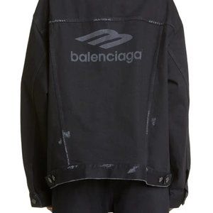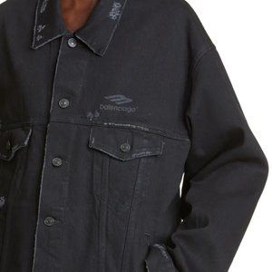 NWT - Balenciaga Logo Oversized Distressed Black Denim Jacket - M