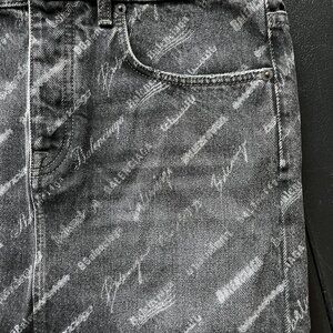 Balenciaga Logomania Mini Skirt Black Denim Allover Logo Print Fitted