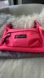 Fluo Pink nylon shoulder bag with aged-silver chain strap. Features Balenciaga logo patch at front, double-zip top closure, one main compartment, front zip pocket, and back zip pocket. Nappa lambskin lining. Matte black and aged-silver hardware. Made in Italy.