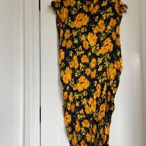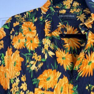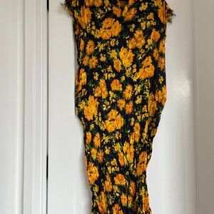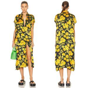 NWT Balenciaga Silk Satin Midi Dress Yellow Floral Print Allover Raw Hem Sleeves