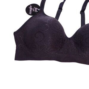 Tags: wireless bra 36B, black swirl full coverage bra, seamless t-shirt bra, everyday comfort bra, soft stretch bra, no wire support bra, lightweight lounge bra