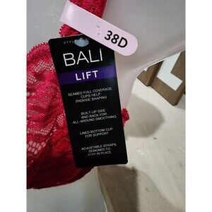 NWT Bali Lace Lift Full Coverage Underwire Bra DF6543 Size 38D Red Smoothing
