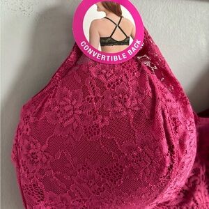 NWT Bali women's Lace Desire Convertible Wire-Free Bra XL, Signature Berry