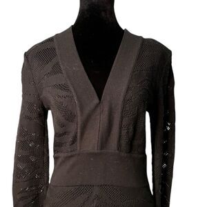 100% Cotton knit dress. See through to be worn as is or with a nude slip underneath for modesty. Tags attached, some fuzz from storage but this is new. Lots of stretch in material except for waist band. gold zipper back. Made in France.