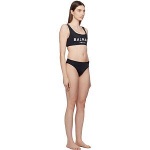 NWT Balmain Paris Stretch Square Neck Embroidered Logo Bikini Set Black Size IT4
