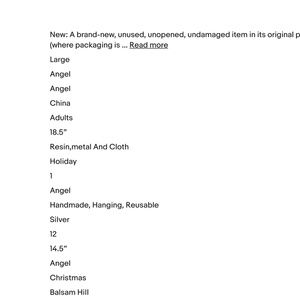 NWT Balsam Hill Silver Angel Christmas Tree topper