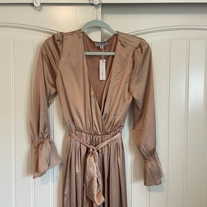 NWT Baltic Born Holly Satin Faux Wrap Maxi Dress Champagne Size medium