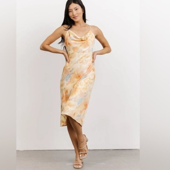 NWT Baltic Born Katarina Slip Midi Dress Pale Yellow Floral XL Wedding Party