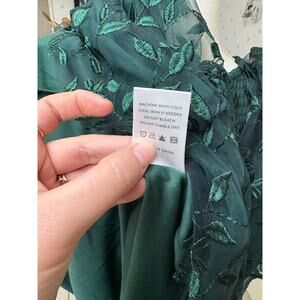 Baltic Born exclusive style Deep emerald green color Glitter floral pattern throughout Stunning, high quality tulle overlay Round neckline with keyhole closure at back Adorable short sleeves Natural elastic waistline with stretch Short skirt Lined bodice and skirt Due to the extensive embroidery, please note that this dress may arrive with loose threads that will need to be trimmed.