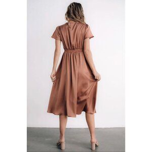 NWT Baltic Born Poppy Satin Midi Dress Party Wedding guest Rosy Brown XS