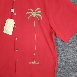NWT Bamboo Cay Shirt Mens Large Red Palm Tree Embroidery Hawaiian Camp Tropical