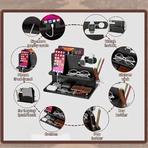 * Dedicated slots for holding pens, phone, tablet/pad, watch, wallet, glasses, keys and other small items, it will keep your workspace tidy & daily items in one convenient location.