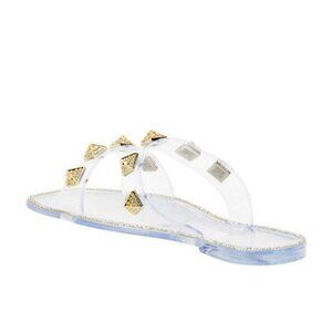 NWT Bamboo Rhinestone Stud Embellished Jelly Flat Slides Sandals