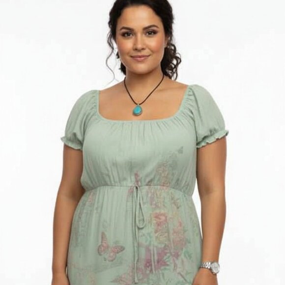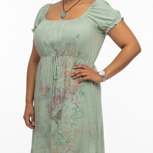 NWT Bamboo Traders Bohemian Sage Green Dress L Colorful Butterfly Floral Print