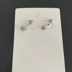 NWT Banana Republic, arrow earrings, color: silver, faux diamond accents, rubber backings, original packaging, new