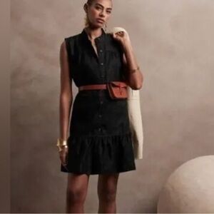 NWT! Banana Republic Black Linen Flounce Hem Mini Dress - Size Medium 🐯