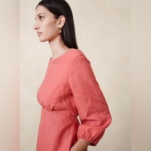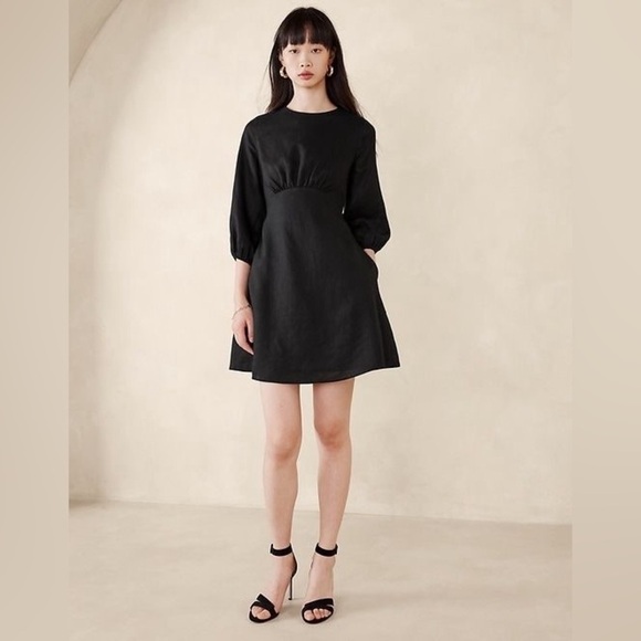 Shop Banana Republic's Lisa Open-Back Linen Dress: A charming mini dress with a surprise at the back, this flowing style has the season's empire waist and volume sleeves.