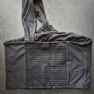 Knotted front. One-shoulder strap.